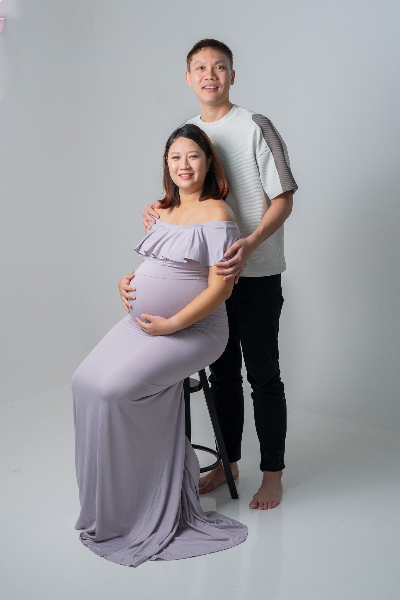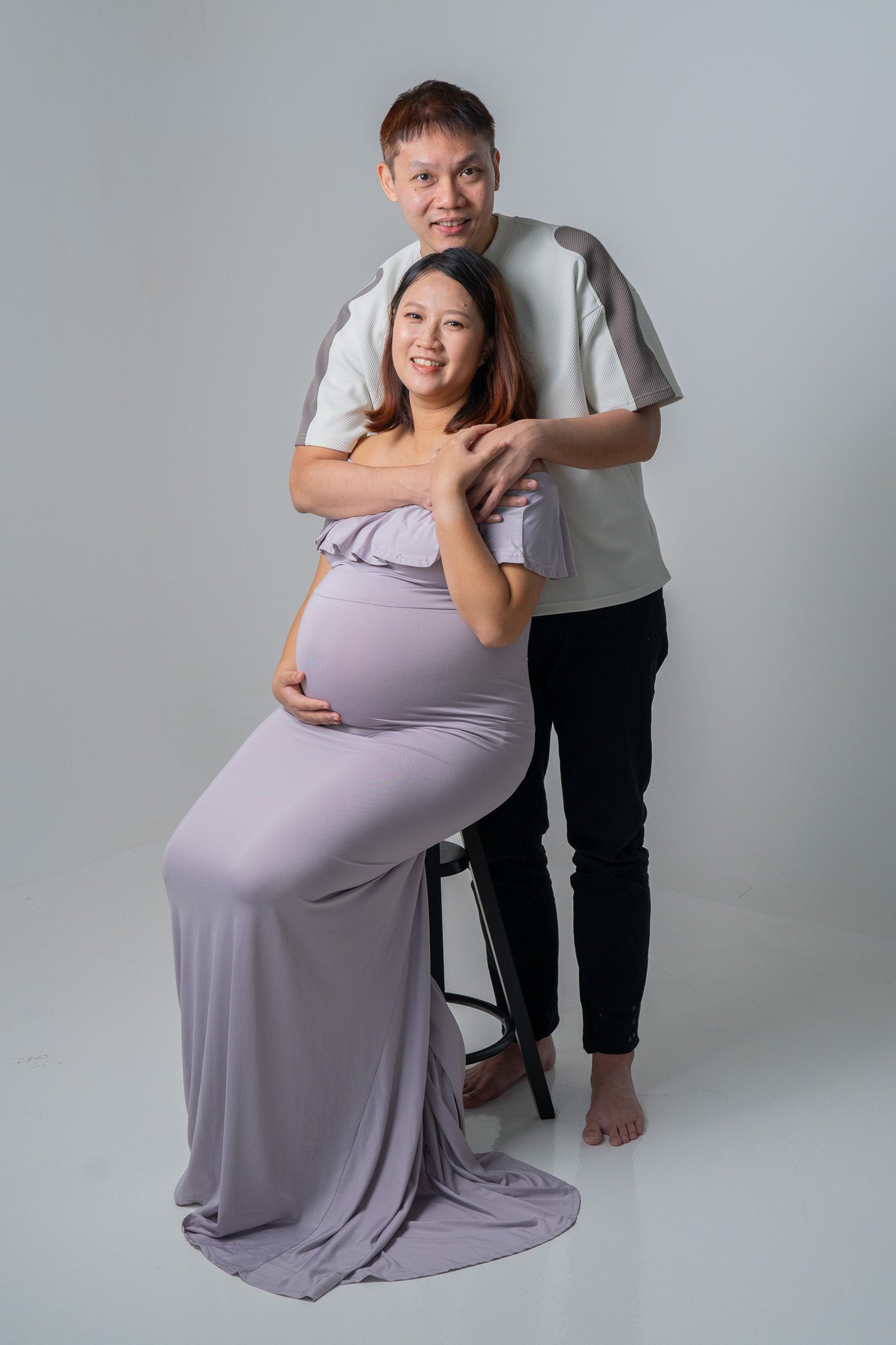 Our sessions are thoughtfully designed to highlight the radiant glow of pregnancy, the tender emotions of this phase, and the love that surrounds your growing family. Whether in the serene comfort of our studio or amidst the natural beauty of an outdoor setting, we craft timeless portraits that honor the miracle of new beginnings.